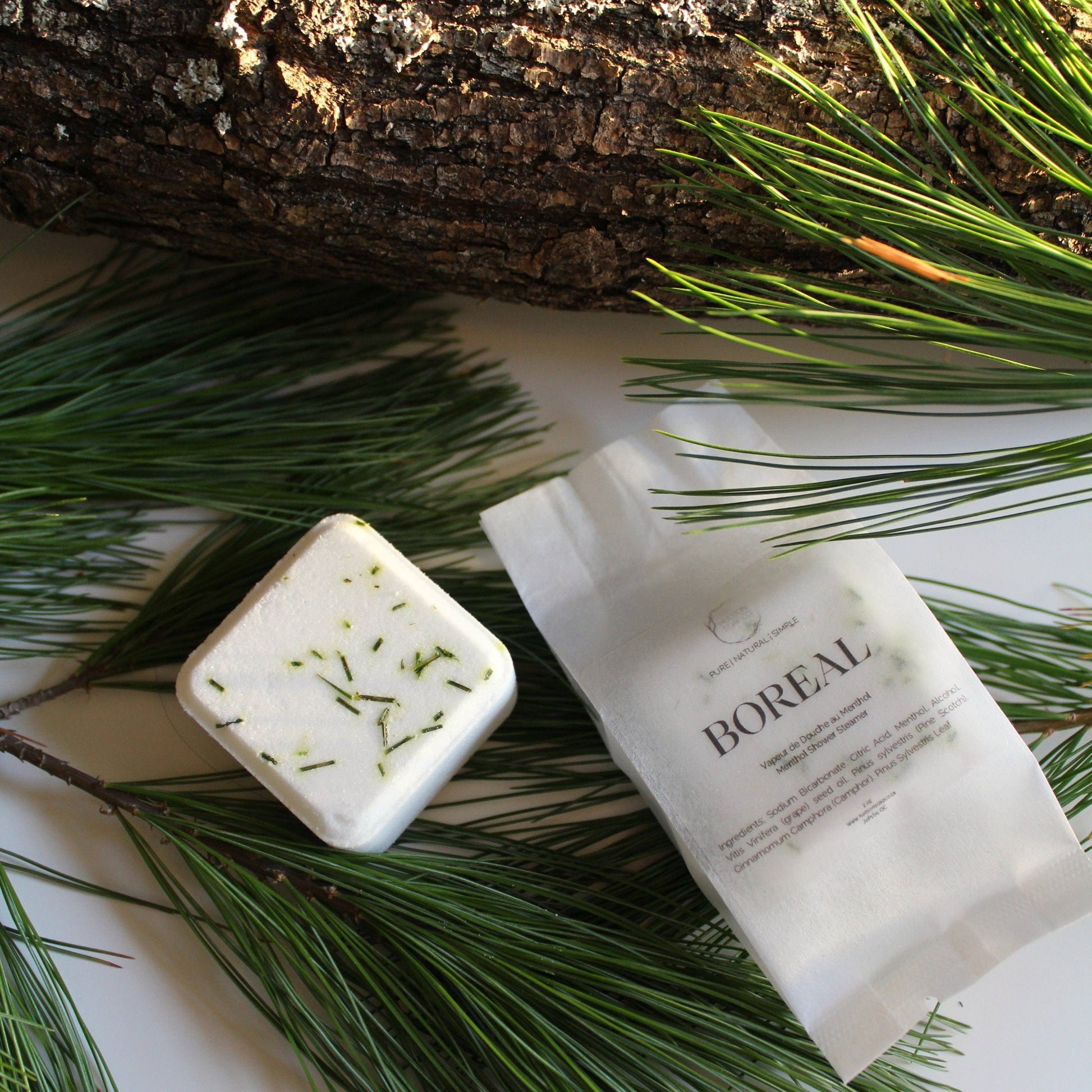 Améliorez votre douche avec notre galet de douche BOREAL ! Infusé d'huiles essentielles de qualité thérapeutique et de cristaux de menthol rafraîchissants (taux d'utilisation de 3,5 %), il emplit votre douche d'un arôme frais, vif et vivifiant. Parfait pour la détente et le dégagement des voies respiratoires—respirez profondément et détendez-vous.