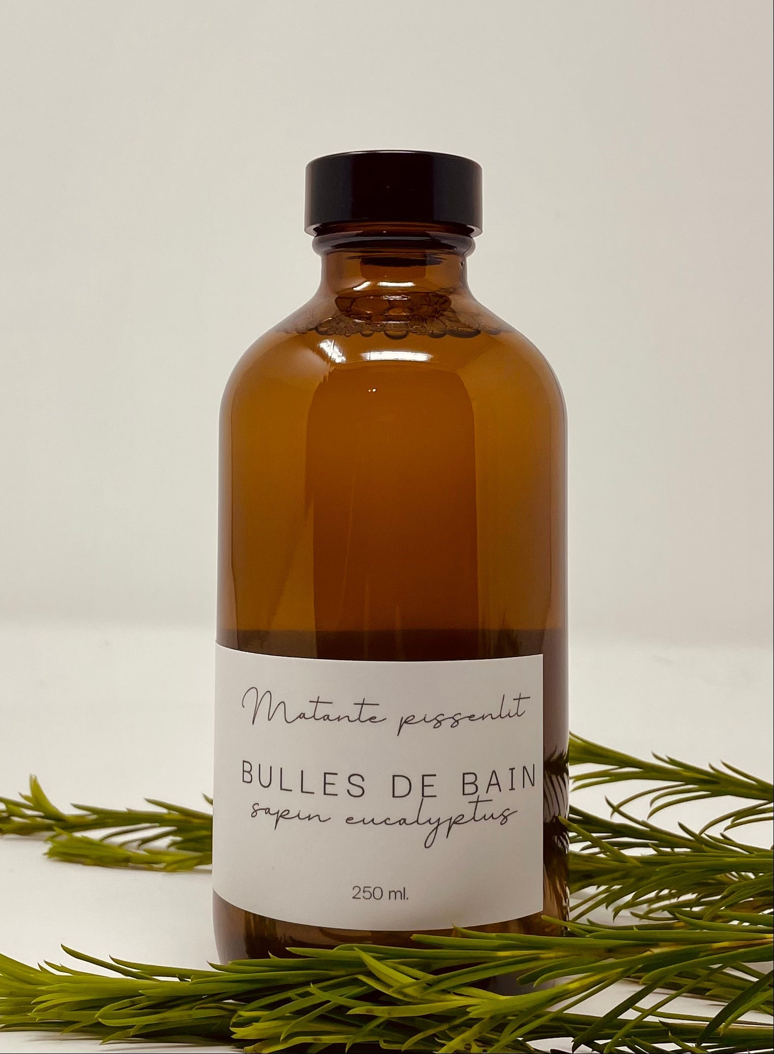 Ingrédients: Coco bétaïne, decyl glucoside, eau, huile essentielle de sapin baumier, essence de sapin, huile essentielle d’eucalyptus globulus.