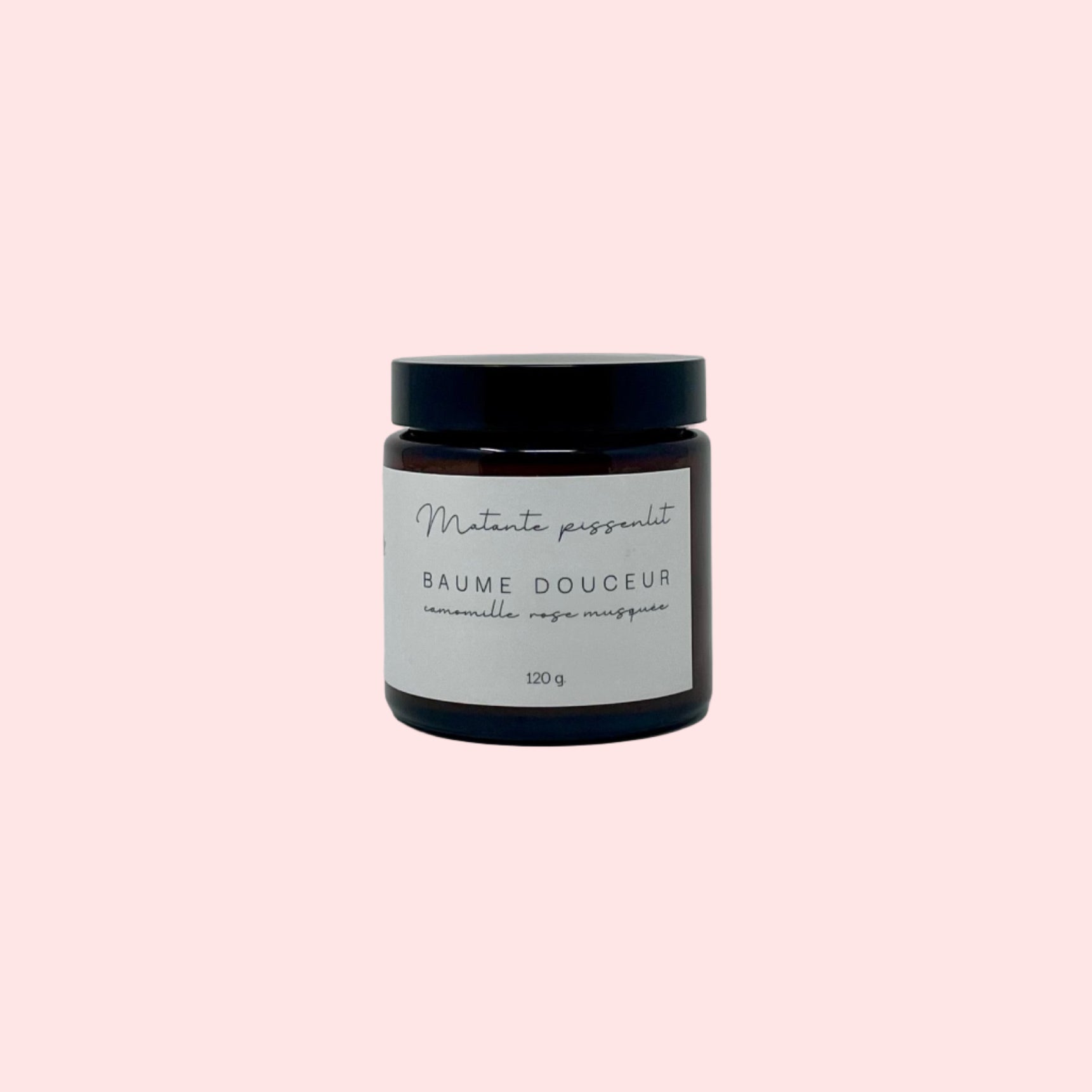 Ingrédients: beurre de karité, huile de coco, huile de rose musquée, vitamine E, macérat de camomille, cire de carnauba.
