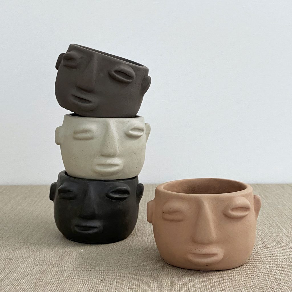 Petit pot Toby (visage) en Jesmonite blanc avec bougie - Safran & Vétiver - 3oz