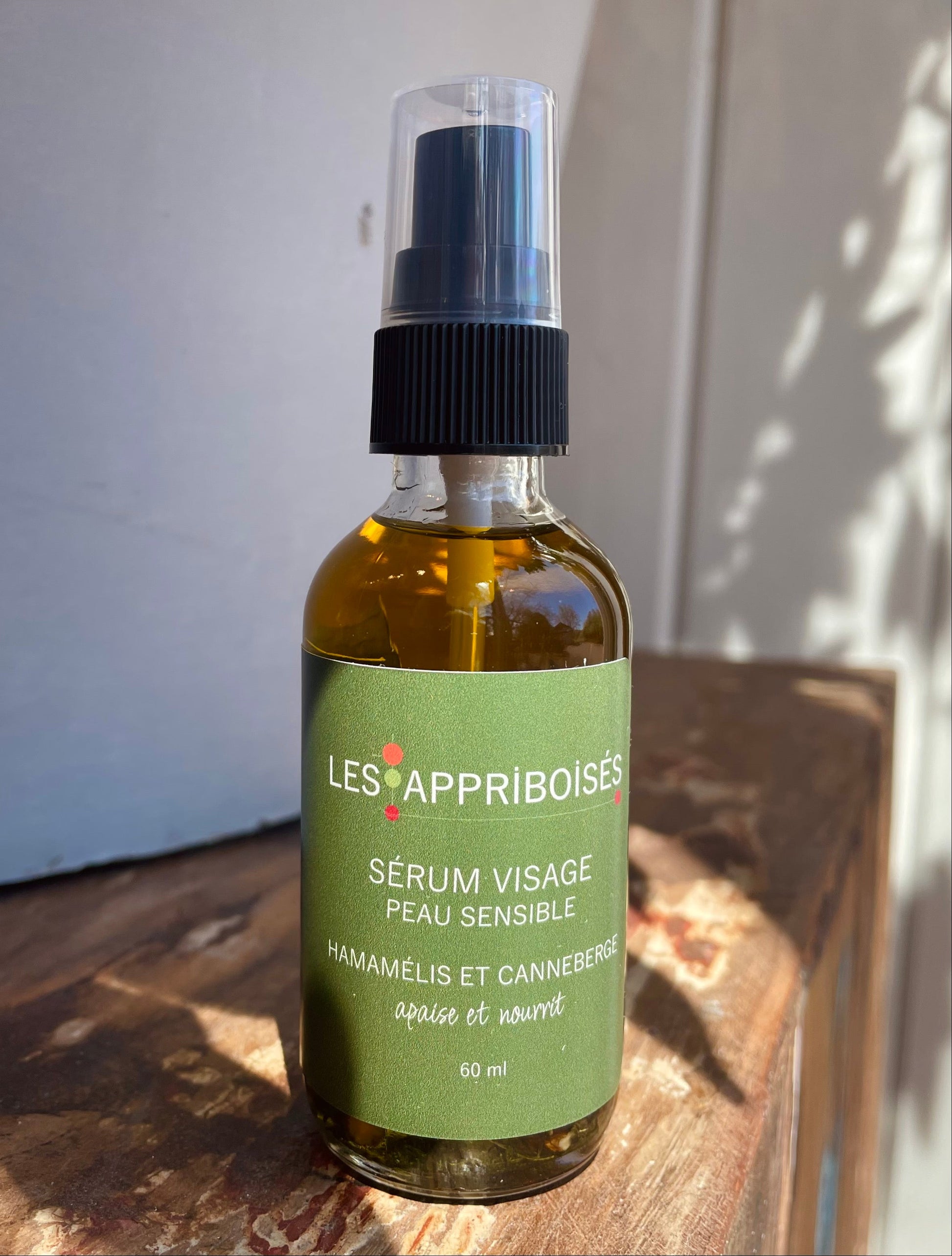 Sérum visage pour peau sensible à l'hamamélis sauvage du Québec et huile de pépins de canneberge.